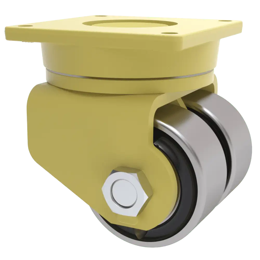 Dual Wheel Caster configurations are engineered for exceptional load capacity, stability, and versatility in demanding industrial applications. With a dual wheel configuration and low overall height, these casters offer the highest capacity while maintaining space efficiency. Our casters ensure even weight distribution, reducing pressure on flooring and ground surfaces to prevent damage. The innovative design allows for the use of smaller diameter dual wheels, providing optimal load distribution and effortless directional changes.